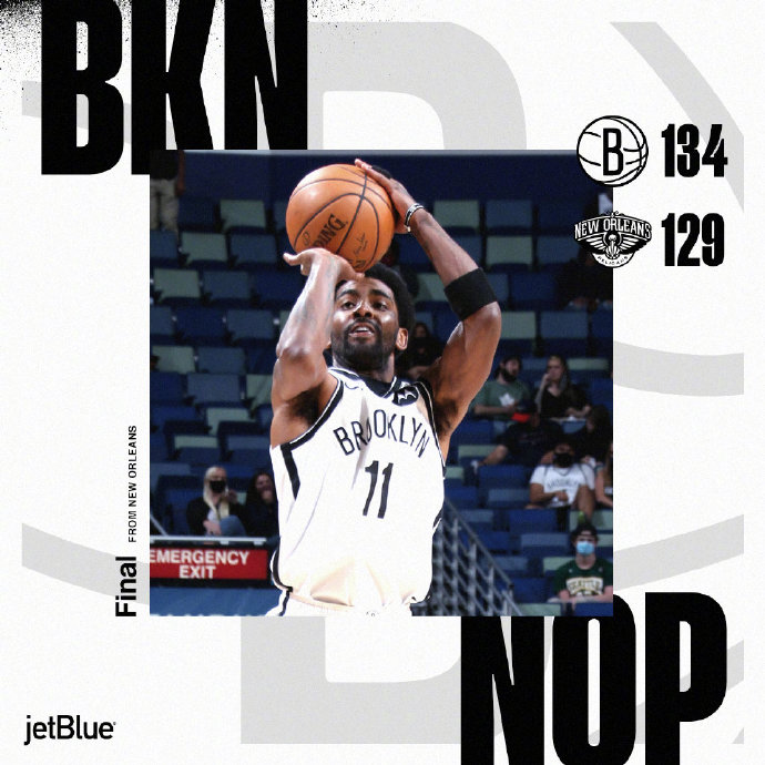 JRS直播网4月20日讯 鹈鹕坐镇主场迎战篮网,最近遭遇3连败的鹈鹕距离附加赛名额已经渐行渐远,而篮网则只落后东部第一76人一个胜场,此役哈登和KD缺席,欧文单核带队出战。首节鹈鹕趁着对手手感下降的间隙打出16-0的攻击波取得了两位数的领先,不过篮网很快就在欧文和哈里斯的带领下回敬11-2的攻势迎头赶上,次节锡安受困于犯规未能发挥应有的战斗力,篮网一众角色球员则在欧文状态不佳时挺身而出拯救球队于水火之中。第三节欧文终于复苏,各种单打和与队友的连线纷至沓来,鹈鹕在落后两位数后如梦初醒,英格拉姆和鲍尔接连发威,一波17-6的攻势后将两队拉回同一起跑线,末节两队你来我往分差始终紧咬,关键时刻欧文接管比赛,连续单打得手终结比赛悬念,最终篮网客场134-129力克鹈鹕。