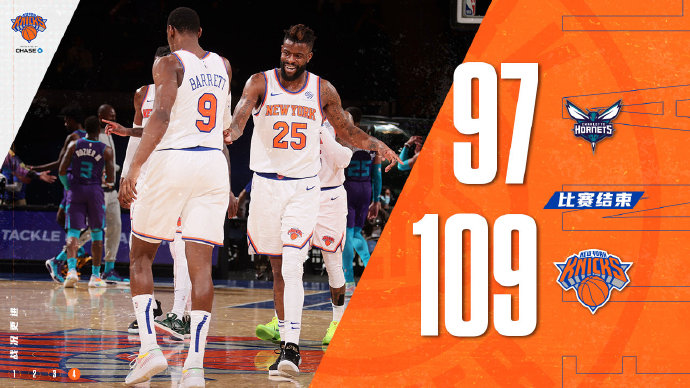 JRS直播网4月21日讯 尼克斯今日坐镇主场迎来黄蜂的挑战,尼克斯近期状态火热目前取得6连胜,黄蜂上一场击败开拓者结束4连败,但排名仍然跌落至东部第八。首节之争黄蜂在开局几度被动之下依靠外线的突然爆发扭转局势,首节他们命中8记三分,这其中华盛顿三分球5投全中爆砍17分,黄蜂一度落后9分的情况下反超3分结束第一节。次节之争两队交替拿分,尼克斯新秀奎克利同样单节拿下17分,但黄蜂众将合力并在节末连中三记三分守住6分优势进入下半场。第三节易边再战仍然有球员迎来爆发,上半场8投1中仅得3分的巴雷特在这一节爆发,他在这一节轰进4记三分独砍18分,尼克斯抓住黄蜂状态回落实现反超,末节尼克斯开局不久便将优势拉大至两位数奠定胜局。最终,尼克斯主场击退黄蜂迎来7连胜。