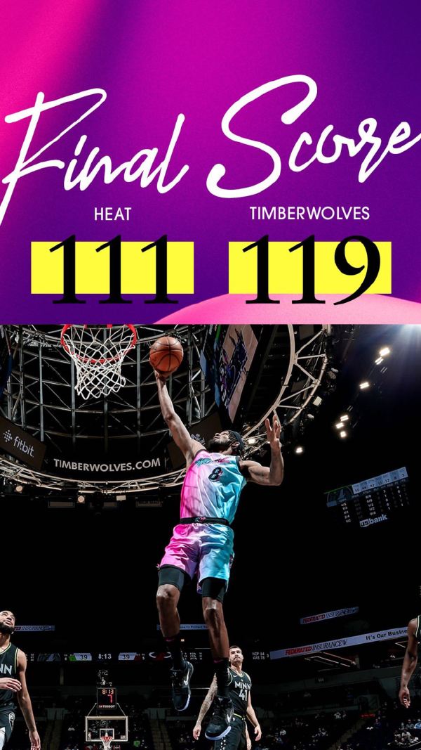JRS直播网4月17日讯 NBA常规赛,热火客场挑战森林狼。两支球队目前均遭遇了两连败,森林狼在缺少唐斯的情况下,森林狼两战均是大比分输球,但状元郎爱德华兹成为了新秀里首个拿到1000分的球员。热火在对阵太阳和掘金两支劲旅的比赛中毫无抵抗之力,目前已经跌到了东部第七,面对弱旅,他们急需一场胜利。本场唐斯迎来复出。一开场,巴特勒连拿9分帮助热火取得领先,森林狼连中4个三分缩小分差,热火持续发力保持优势,热火领先11分结束首节。次节比赛,热火半节仅得4分,森林狼轰出一波20-4反超5分,阿里扎连续命中三个三分个人半场得到16分,双方打成61平进入下半场。易边再战,双方打得难解难分,比分交替领先,巴特勒和德拉季奇联手拿到10分帮助热火领先5分结束第三节。末节争夺,热火状态全无,森林狼越战越勇取得两位数领先。唐斯虽然六犯离场,但热火没能挽回败局。最终,森林狼战胜热火,结束两连败的同时送给对手三连败。