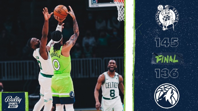 JRS直播网4月10日讯 NBA常规赛,凯尔特人今日迎战森林狼,前者上场比赛险胜尼克斯排在东部第七,后者则是输给了步行者继续在西部垫底,本场比斯利缺战,拉塞尔继续替补。比赛上来两队就展开拉锯,不过在首个暂停之后凯尔特人的命中率开始下降,森林狼则越投越准,分差被逐渐拉开到了两位数,次节塔图姆发挥出色连续得分,但球队的糟糕防守让追分变得十分困难,半场结束时森林狼领先9分。易边再战,凯尔特人终于是找到状态,多次发起反扑,并利用森林狼在三节末段命中率下降的时机追上比分,末节更是一举实现反超建立起两位数的领先优势,但顽强的森林狼此后再次追平比分,关键时刻塔图姆绝杀球不中比赛进入加时,加时赛凯尔特人没有再给对手任何机会,火热的外线手感帮助他们一直保持领先,最终凯尔特人经过加时逆转森林狼。