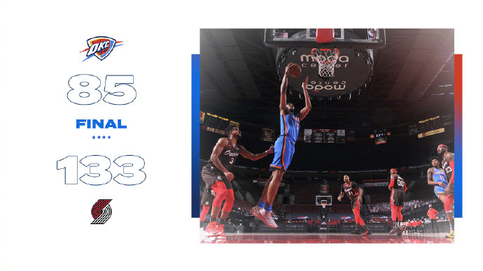 JRS直播网4月4日讯 NBA常规赛,开拓者今日迎战雷霆,前者上场比赛输给了雄鹿暂列西部第六位,后者也同样是输给了太阳排在西部第十三位。比赛上来开拓者就展示出了压倒性的实力,一波7-0完美开局,之后更是将分差拉开到了两位数,次节雷霆终于有所回暖,一度将分差缩小回个位数,但节末又被开拓者打出攻势,半场结束时场上分差为19分。易边再战,雷霆的表现变得更加糟糕,单节仅拿到13分输给开拓者26分之多,分差最多时已经突破了50分,最终开拓者狂胜雷霆拒绝连败。