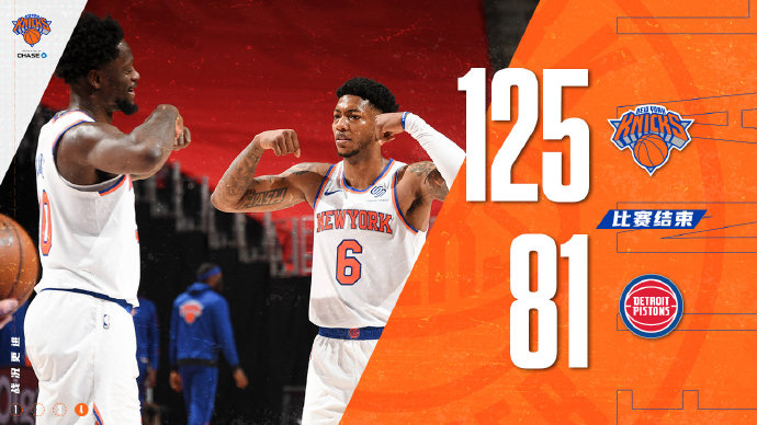 JRS直播网4月4日讯 NBA常规赛,活塞主场迎战尼克斯,尼克斯最近已经三连败掉落至东部第七,活塞虽然上一场取胜,但依然东部垫底。比赛上来,尼克斯就打出11-0开局,随后兰德尔和布洛克外线手感火热继续连中三分,活塞只有约瑟夫状态在线,首节结束尼克斯就领先26分。次节双方命中率都不高,尼克斯抓住机会一度将分差拉开至30分以上,但末段活塞打出一波小高潮将分差追至19分。下半场回来,格兰特带领活塞继续追分,但兰德尔和布洛克的外线三分手感依旧不错,三节结束,尼克斯依然领先27分。末节尼克斯众将将分差拉开至30分以上,随后替补三分全开将分差越拉越大,最终尼克斯狂胜活塞44分,终止3连败。
