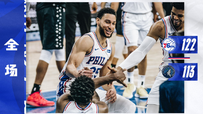 JRS直播网4月4日讯 76人今日坐镇主场迎来森林狼的挑战,恩比德在受伤休战20天后迎来复出。首节对决森林狼的三板斧打的76人有些被动,凭借着节末一波15-8的攻势,森林狼笑到最后并取得3分领先,次节森林狼依靠爱德华兹单节拿到11分的发挥和对手周旋,不过这一次轮到76人节末发力,后者在恩比德不断走上罚球线拿分之下送出12-3的攻势取得4分领先结束上半场。第三节开局76人抓住森林狼哑火打出一波13-0的进攻高潮一举打破沉寂的局面,但76人在最多19分领先之下没能守住巨大领先,森林狼在双状元的带领下不断蚕食分差并一度追至4分,不过哈里斯最后时刻强硬拿下12分顶住对手反扑。最终,76人主场险胜森林狼拿下比赛。