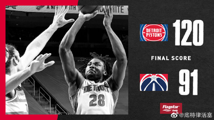 JRS直播网4月2日讯 NBA常规赛活塞主场对阵奇才,开场后活塞率先打出攻势取得领先,约什-杰克逊逐渐展现出不错手感帮助活塞扩大领先,第二节活塞多点开花继续扩大领先,虽然威少努力追分,但奇才整体状态一般,上半场活塞87-68领先奇才。下半场回来虽然活塞手感有所回落,但奇才手感仍旧一般,第四节活塞再次打出攻势锁定胜局,最终活塞120-91大胜奇才。