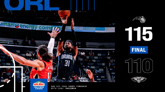 JRS直播网4月2日讯 鹈鹕今日坐镇主场迎战魔术,此役鹈鹕三少锡安、英格拉姆和鲍尔均因伤缺阵,这对于他们是个很大的考验。首节鹈鹕一度取得了7-0的美妙开局,然而魔术很快迎头赶上,并在节末依靠班巴的篮下优势完成反超,次节鹈鹕的进攻陷入停滞,魔术连送两波10分以上的攻击波将分差扩大到13分,好在约翰逊和沃克连中三分止血,这才让下半场更有悬念。第三节鹈鹕终于找回自己的节奏,先是沃克连得7分扳平比分,接着在节末又打出17-4的攻击波将局势彻底扭转,末节两队经历了一波三折的过程,魔术几次取得领先都被顽强的鹈鹕追回,最后时刻沃克更是连得5分将比赛拖入加时。加时赛沃克依旧神勇,但他却在之后连续犯错,T-罗斯关键时刻连续高难度进球终结比赛悬念,最终魔术115-110加时险胜鹈鹕。