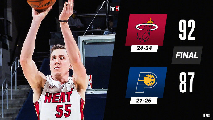 JRS直播网3月31日讯 步行者坐镇主场迎战热火,目前两支球队在东部一个排名第8,一个排名第9,且双方差距也只有1场而已,这也是一场不折不扣的季后赛席位争夺战,奥拉迪波和纳恩缺席了本场比赛。首节热火外线双枪与步行者内线双塔展开对飚,然而决定比赛走势却是两位替补,麦克德莫特和萨姆纳的三记三分帮助球队取得领先,次节步行者一度将分差拉大到两位数,不过节末他们的进攻却突然哑火,热火则在邓罗和希罗带领下打出一波13-1的高潮将分差缩小至2分。下半场两队又经历了过山车般的起伏,热火经历了开局低迷后奋起直追,靠着巴特勒的强打和邓罗的三分终于抹平了15分的分差,关键时刻步行者陷入5分多钟的得分荒,眼睁睁地看着对手将分差拉大。最终热火客场92-87逆转步行者,赢得了进军季后赛道路上的一场关键战役。