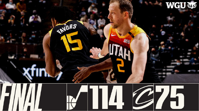 JRS直播网3月30日讯 NBA常规赛爵士主场迎来骑士,爵士最近又是获得5连胜,骑士则是状态不佳遭遇2连败。开场后两队进入状态都比较慢,在米切尔投进三分后爵士逐渐找到手感,他们外线连中三分建立起两位数优势。第二节仍旧是爵士首先打出攻势,他们内外开花将分差拉大到20分以上,上半场爵士53-34领先骑士。下班回来骑士表现仍旧平平,爵士攻势凶猛不断砍分,骑士在第三节结束前再次遭遇得分荒,三节过后爵士领先38分,比赛失去悬念,最终爵士114-75血洗骑士拿下6连胜,骑士遭遇3连败。