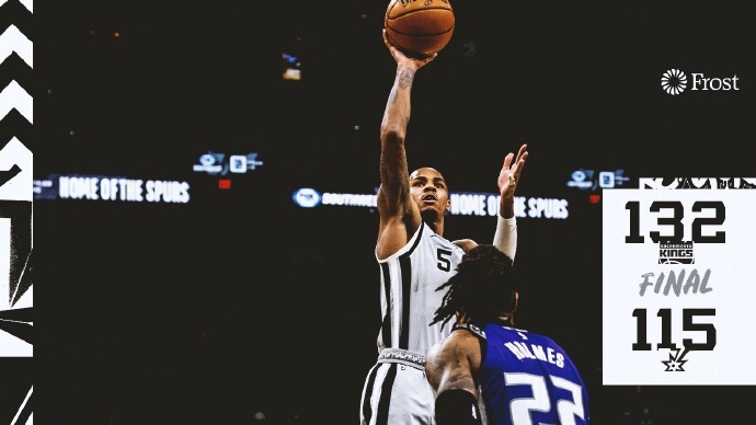 JRS直播网3月30日讯 NBA常规赛继续进行,马刺主场对阵国王。马刺目前排在西部第七,和阿德的友好分手也帮助后者加盟了夺冠热门篮网。国王虽然仅排在西部倒数第五,但近期取得了一波四连胜。一开场,国王多点开花,马刺依靠穆雷的个人能力咬住比分,马刺凭借末段的小高潮领先4分结束首节。次节比赛,国王连续外线开炮,凭借最后两分钟的8-0在半场结束时68-60取得领先。易边再战,国王率先发力一度将分差拉开到18分,德罗赞连投带罚缩小分差,三节打完国王领先6分。末节国王在福克斯的带领下扩大领先并保持到了最后。最终,国王客场战胜马刺,取得五连胜。