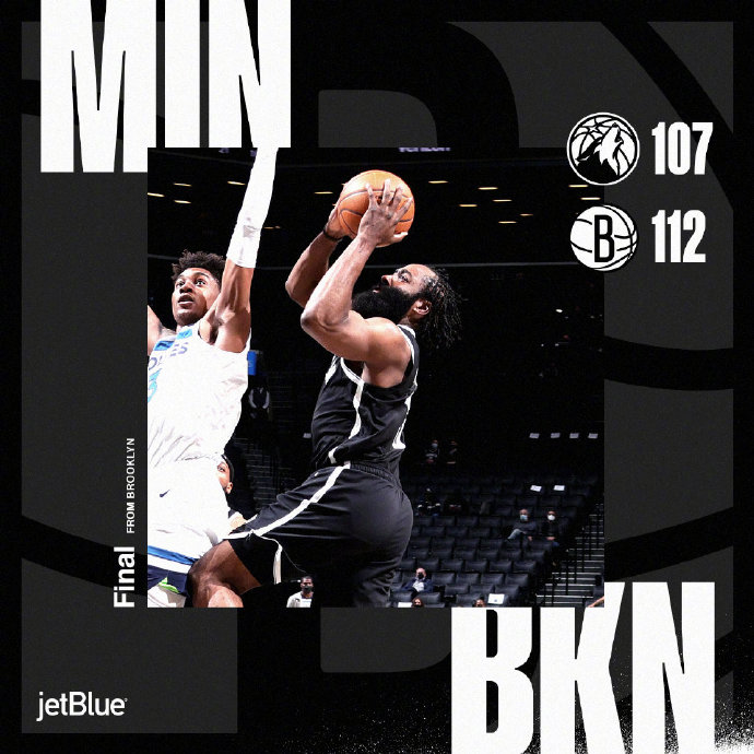 JRS直播网3月30日讯 NBA常规赛篮网主场对阵森林狼,森林狼目前继续在西部垫底,篮网则占据东部第二。开场后唐斯手感不错接连拿分,篮网则是在欧文的带领下打出攻势取得领先,首节森林狼取得两位数领先。第二节虽然森林狼先是发起反扑缩小分差,但欧文重新登场后帮助篮网稳住局势,上半场篮网61-52领先森林狼。下半场回来森林狼掀起反扑一度将分差缩小到4分,哈登站出来帮助篮网稳住局势再次巩固领先,第四节虽然篮网一直保持10分左右的优势,但森林狼最后时刻打出一波攻势将比分追到只差1分,可惜关键进攻他们未能打进,最终篮网主场112-107险胜森林狼。