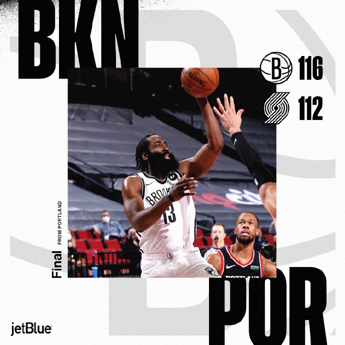 JRS直播网3月24日讯 NBA常规赛,开拓者今日迎战篮网,前者上场比赛大比分输给了独行侠暂列西部第六位,而后者上场比赛则是战胜了奇才,目前排在东部第二位,本场欧文因个人原因缺战。比赛上来两队就开始展开对攻战,不过分差始终没有拉开,坎特首节发挥出色,单节拿到13分8篮板的数据,上半场的大比分时间里开拓者都保持微弱领先,半场结束时篮网落后1分。易边再战,篮网虽然多次有拉开分差的势头,但开拓者总能及时给出回应咬住比分,比赛悬念一直保持到了最后,关键时刻哈登使出犯规战术没有给开拓者绝平的机会,最终篮网险116-112胜开拓者。