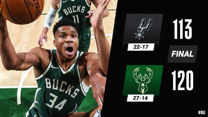 JRS直播网3月21日讯 NBA常规赛,雄鹿坐镇主场迎战马刺队,两队近期状态俱佳,马刺已经取得三连胜,雄鹿则是一波五连胜,本场米尔斯和穆雷缺阵。开场两队便进入对攻,字母哥和约翰逊内突外投各得五分,德罗赞也连中两记中投,随后字母哥因故返回更衣室,马刺内外兼顾连续打成,逐渐取得领先。次节字母哥回到场上,但马刺进攻势头已经无法遏制,很快取得两位数领先。但场上风云突变,马刺陷入一波得分荒,雄鹿则稳扎稳打逐渐蚕食分差并取得反超,半场结束时霍勒迪的三分球帮助雄鹿57-50领先到七分。易边再战两队继续交替得分,三节下半段沃克突然爆发个人连得11分,帮助马刺迫近并一度反超,随着霍勒迪连得五分,三节结束雄鹿88-84领先四分。末节上来,马刺外线手感不佳,进攻陷入停滞,雄鹿则在众人发力下拉大比分差距,马刺连续叫出暂停,沃克维持手感帮助马刺紧咬比分,米德尔顿则频频做出回应。进入最后两分钟字母哥弧顶投中三分,随后又命中中投,杀死比赛,雄鹿七人得分上双,以120-113主场击退马刺,取得六连胜。
