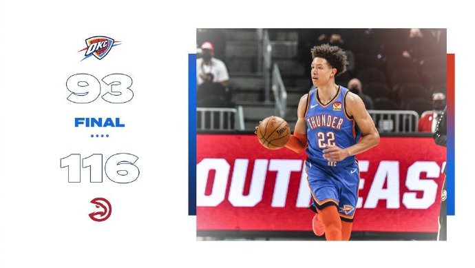 JRS直播网3月19日讯 NBA常规赛老鹰对阵雷霆,老鹰状态火热拿下6连胜。开场后特雷-杨就展现出火热状态帮助老鹰早早取得两位数优势,虽然雷霆外线找到手感连追三分,但老鹰在第二节再次掀起攻势继续扩大领先,上半场老鹰61-41大比分领先。下半场回来亚历山大凭借一己之力频频砍分,但双拳难敌四手,科林斯和博格达诺维奇两人联手帮助老鹰始终保持巨大优势,第四节雷霆也无力追分,最终老鹰116-93轻松拿下雷霆取得7连胜。