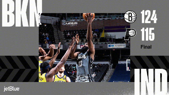 JRS直播网3月18日讯 已经5连胜的篮网客场迎战步行者,此役欧文缺阵,哈登单核带队冲击6连胜。首节哈登一如既往的扛着球队前进,球队进攻在他的梳理下是井井有条,然而当哈登下场后篮网突然断电,步行者在萨博尼斯的带领下打出16-3的攻击波将分差拉大到15分之多,次节哈登上场后重新掌握比赛节奏,一波11-2将分差拉回,步行者进攻效率明显下降,半场结束时领先优势被缩小到只有3分。下半场,哈登的抛投帮助球队终于追平比分,步行者在末节进攻乏力,篮网趁机扩大优势,关键时刻哈登开启巨星模式接管比赛,步行者对此无能为力,最终篮网124-115逆转步行者豪取6连胜。