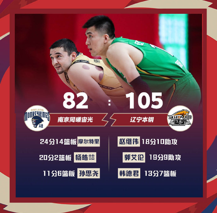 JRS直播网3月17日讯 CBA常规赛,同曦今日迎战辽宁,同曦本赛季战绩不佳十连败后排在积分榜末位,而辽宁则排在积分榜次席,本场比赛朱荣振轮休。首节比赛,辽宁先在篮板拼抢中占领优势打开局面,随后辽宁全面进入状态,进攻端中先是赵继伟连续飙进3记3分,转换进攻中辽宁也通通打进,防守端中限制同曦前9分钟里仅得5分瞬间打出一波19-0,建立起19分领先,最后13秒王旭压哨抛投打进,最后辽宁首节取得15分领先。次节比赛,辽宁进攻端中连续三分不进,被同曦抓到机会依靠摩尔反击和的杨皓喆的三分将分差一度缩小到5分,但是郭艾伦反击中连续突破取分帮助辽宁重新取得10分领先。易边再战,辽宁上来就依靠赵继伟的三分和郭艾伦反击又将分差拉大到18分,随后同曦进攻端中连续不进被辽宁不断打成转换进攻分差瞬间被拉开到26分,对攻几个后辽宁领先同曦21分进入末节。末节之争,同曦上来依靠孙思尧和衡艺丰不断冲击内线发将比分迫近,辽宁则依靠内线的发挥稳定优势。随着贺天举投进三分分差继续来到20分,随后时间逐渐流失,比赛也失去悬念,最终辽宁105-82战胜同曦送同曦十一连败。