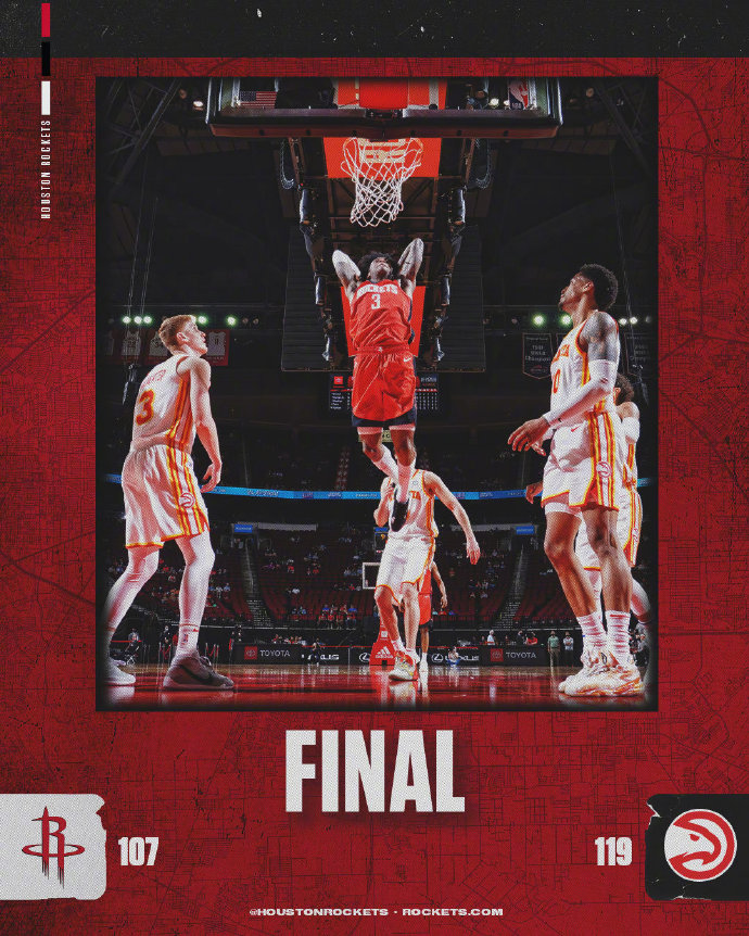 JRS直播网3月17日讯 NBA常规赛火箭主场对阵老鹰,火箭近来已经创队史的遭遇16连败,反观老鹰近来状态不错取得5连胜。开场后虽然火箭首先进入状态,但特雷-杨和加里纳利先手找到手感帮助老鹰在首节便取得两位数优势,第二节老鹰外线手感火热一度将分差拉大到23分,但奥拉迪波和波特两人联手又为火箭咬住比分,上半场老鹰73-58领先火箭。下半场回来火箭在奥拉迪波的带领下掀起反扑,他们外线连中三分在三节结束时将比分追到只差1分。但第四节老鹰迅速调整重新建立领先,最终老鹰119-107送给火箭17连败。