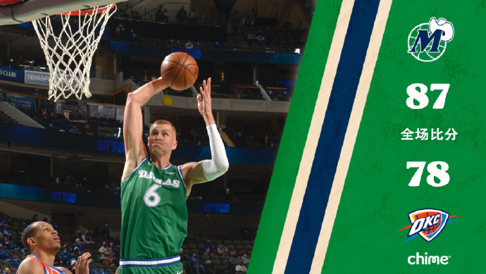 独行侠:史密斯4分8篮板、克莱伯8分7篮板2盖帽、波尔津吉斯19分13篮板、理查德森16分6篮板4抢断、布伦森11分6篮板4助攻2抢断、哈达威19分6篮板2助攻、伯克9分2篮板6助攻