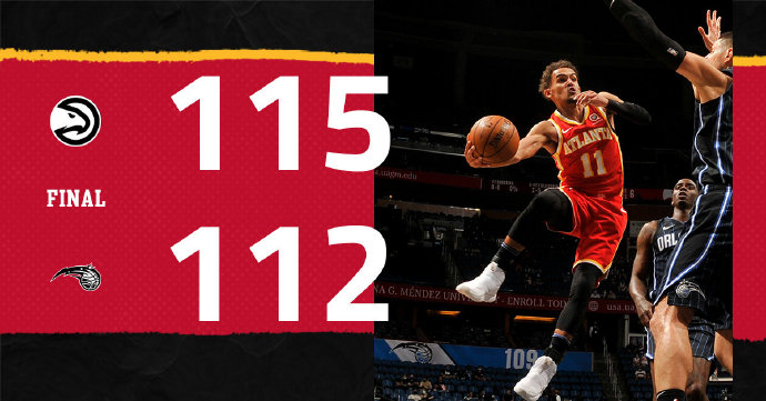 JRS直播网3月4日讯 NBA常规赛,老鹰迎来了五连客的第四场比赛,奔赴奥兰多客场挑战魔术队,后者遭遇伤病潮近期状态不佳,正经历一波四连败,距离东部第八已经渐行渐远。前者则是刚刚换帅,上场比赛击败了近期状态出色的热火,终结了对手的六连胜,目前排名东部第十一,距离东部第八黄蜂1.5个胜场。本场比赛卡佩拉、富尼耶因伤缺战。首节比赛魔术进攻火力凶猛,三分11投6中单节轰下39分,老鹰则靠特雷杨单节10分咬住分差。次节老鹰由于失去了内线支柱攻防两端都有所受限,魔术则始终围绕武切维奇这个优势点打,最终以19分的优势结束上半场。异地再战,老鹰手感火热连续命中三分,一度将分差迫近到了5分,可魔术随即加强防守并抓住武切维奇这个优势点,再次将分差拉开,但节末隆指导连续助攻队友命中三分,以12分的分差进入第四节的决战。末节首段,老鹰打出流畅进攻再次将分差迫近到6分,虽然比分随即被魔术再次拉开,但节中老鹰疯狂下起三分雨再次将比分拉近,并在最后三分钟将分差追至3分。决战阶段,双方交替领先,最后18秒武切维奇补篮为魔术领先1分,可特雷杨随后造犯规罚球准绝杀,随着魔术最后一投中投不中,最终老鹰客场逆转魔术,送对手五连败。