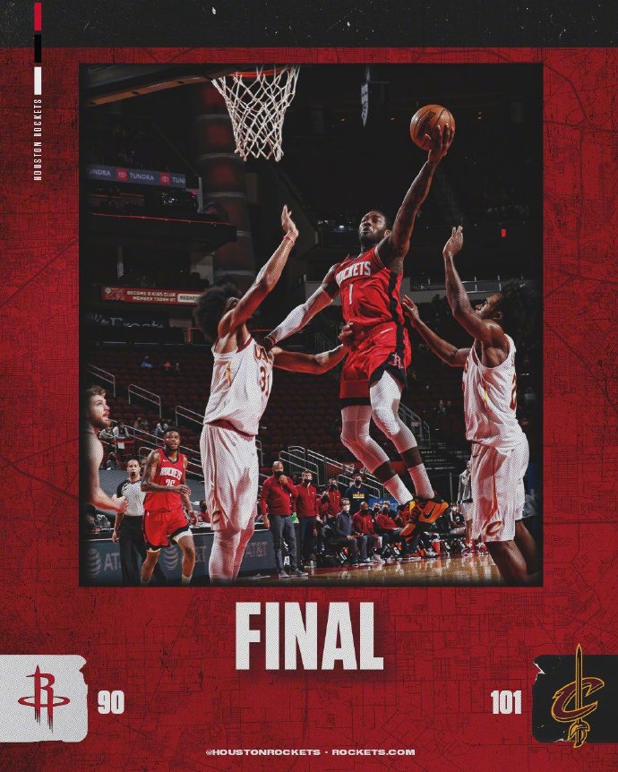 火箭(11-22):沃尔32分3篮板5助攻,奥拉迪波20分3篮板3助攻3抢断,塔克7分4篮板,巴顿6分6篮板2封盖,布朗8分5篮板,泰特5分4篮板2助攻。