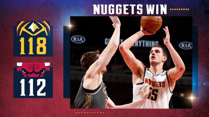 掘金(19-15):约基奇39分14篮板9助攻1抢断2盖帽,波特17分15篮板,穆雷24分3助攻,巴顿14分6篮板2助攻,莫里斯7分2篮板4助攻,坎卡8分4篮板,多齐尔5分2助攻。