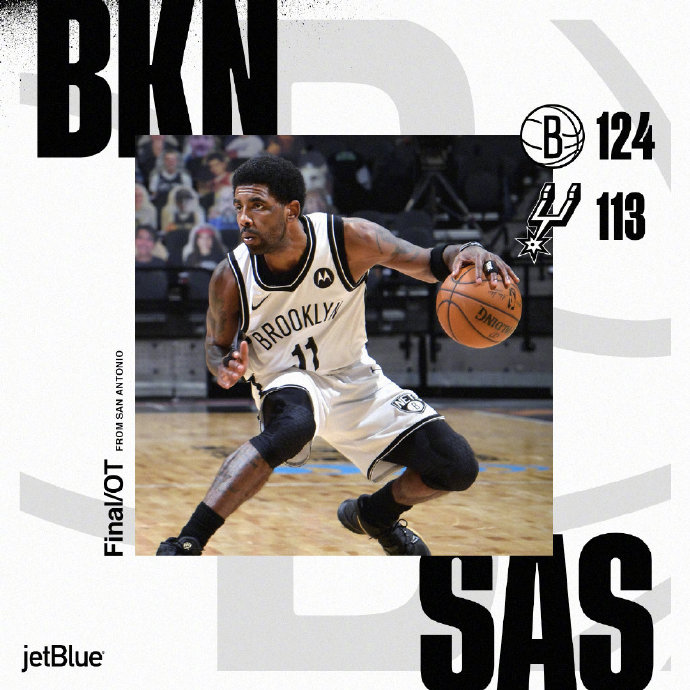 JRS直播网3月2日讯 被独行侠终结8连胜的篮网今日做客圣安东尼奥迎战马刺,此役欧文复出,杰夫-格林则继续因伤缺席。首节哈登虽然一分未得,但他却送出6次助攻盘活了全队,在他的穿针引线下篮网多点开花,一波8-0的攻势很快便确立了领先优势。次节,马刺依靠突破冲击内线一度追平比分,但靠着哈登的单打以及奇兵克拉克斯顿单节13分的神奇表现,篮网又重新拉开分差,节末马刺下起一波三分雨顽强地将分差缩小至3分。第三节马刺利用对手进攻效率下降的良机,靠着沃克、珀尔特尔、穆雷的反复冲击终于将比分追平,末节哈登开始接管比赛,一波16-3的攻势让马刺瞬间陷入被动,但马刺却在最后时刻三军用命回敬一波16-6将分差缩小至2分,关键时刻穆雷命中压哨绝平球将比赛拖入加时。加时赛,欧文、布朗和哈登连续命中四记三分,马刺没能重演奇迹,最终篮网客场124-113击败马刺。