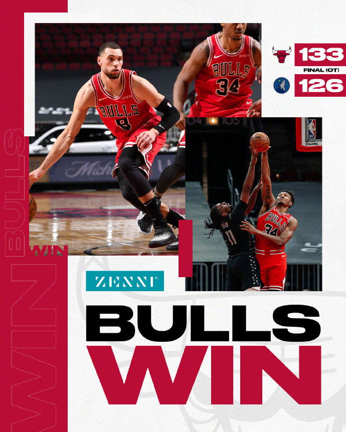 JRS直播网2月25日讯 今日东部第八的公牛主场迎战联盟垫底的森林狼。森林狼在上一场刚经历换帅,目前已经遭遇5连败。即使唐斯已经复出多场,但森林狼的战绩依然没有起色。公牛则刚刚跻身东部第八,拉文若想带领球队时隔多年重返季后赛,今天这场比赛则不能犯错。首节,先进入状态的是森林狼,并掌控着前半节的节奏。后半节拉文带队反击并紧咬比分,双方以一个球的差距结束。次节双方加快攻防节奏,公牛开局打出12-4的进攻,在行进半节时把领先扩大到两位数。森林狼在后半节进攻才有起色,但公牛在半场结束前仍把分差保持在两位数。下半场,双方各打了半节好球。森林狼依靠比斯利和唐斯努力在追分,公牛则由拉文和萨托兰斯基联手稳住局面。末节,森林狼快速缩小分差,双方也提前进入决战时刻。最后12秒卢比奥造三分犯规,双方进入加时赛。加时赛,拉文和怀特成为了主角,森林狼没能实现逆转。最终公牛通过加时赛133-126赢下比赛。