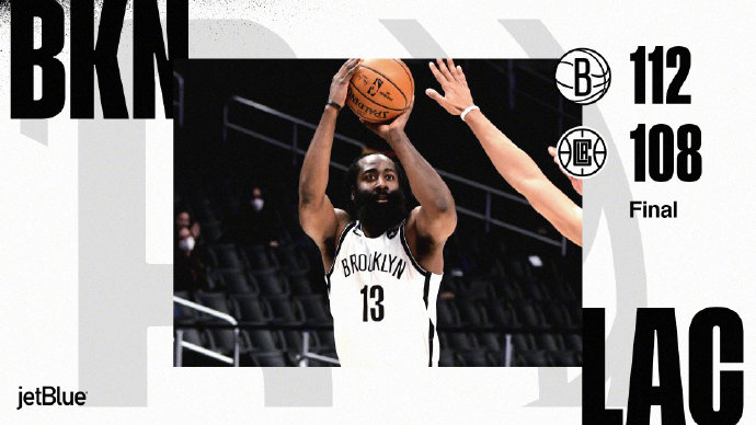 JRS直播网2月22日讯 篮网今日迎来自己西征5连客的最后一个对手快船,两支球队近期状态都很出色,篮网虽然缺少杜兰特但已经取得5连胜,快船则在上一场击败联盟第一的爵士后取得近6场比赛里的第5场胜利。首节比赛篮网成了哈登和欧文两人的表演,两人包揽首节28分里的25分一度为球队取得领先,不过最后时刻快船凭借两记三分扭转局势,次节欧文虽然一分未得,哈登也没有大包大揽只得到8分,但篮网的角色球员都站出来拿分并帮助球队扭转局面,篮网也在第二节反超7分结束上半场。第三节至第四节初篮网牢牢把控着比赛一直占据上风,末节初哈登一传一射为篮网取得最大的15分领先,不过随后连续打铁失误给了快船机会,乔治连砍12分联手小卡在最后时刻追平比分。不过小乔丹面对旧主抢下关键篮板并补篮上演绝杀。最终,篮网客场绝杀快船惊险取胜,并以6连胜之势结束客场之旅。