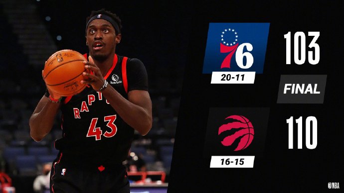JRS直播网2月22日讯 NBA常规赛猛龙主场迎战76人,76人近来取得2连胜仍旧占据东部榜首,猛龙也状态不错拿到3连胜。开场后76人率先打出攻势取得领先,随后西亚卡姆接连为猛龙追分,范弗里特连中4个三分帮助猛龙反超比分。第二节西蒙斯和哈里斯两人先后强攻篮下帮助76人夺回领先,上半场76人55-52领先猛龙。第三节两队仍旧打得互不相让,76人内线占据优势,猛龙则三分越投越顺,第四节布歇异军突起接连砍分帮助猛龙确立领先。76人则在进攻端陷入挣扎,最终猛龙110-103成功逆转76人取得4连胜。