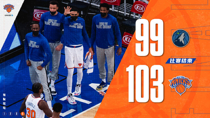 JRS直播网2月22日讯 NBA常规赛今日继续进行,排名全联盟垫底的森林狼客场挑战排名东部第八的纽约尼克斯。本场比赛之前,森林狼已经遭遇三连败,而尼克斯则在上一场比赛输给了魔术。此役,米切尔-罗宾逊、拉塞尔继续缺阵。开局森林狼就由唐斯和卢比奥命中三分,而尼克斯则多点开花,比赛开始不久首发五人就均有得分进账。森林狼首节除了爱德华兹命中三分,所有得分全部都由唐斯和卢比奥包揽。双拳难敌四手,尼克斯首节就建立了12分领先优势。次节比赛森林狼角色球员逐渐找回状态,虽然尼克斯手感不如第一节,但依然能够保持领先。双方打得你来我往有来有回,本节末段尼克斯通过球员个人能力将比分拉回到了11分。下半场比赛,森林狼改守联防,但是效果并不好,兰德尔、巴雷特均有出色发挥。唐斯因抱怨吹罚吃技术犯规后兰德尔内外开花,连得5分打停森林狼。暂停之后巴雷特又站了出来,多次在森林狼打出漂亮进攻后给予回应。尼克斯逐渐将分差拉大到20分,而节末埃尔南戈麦斯打成3+1,尼克斯没能将分差保持在20分。第四节开始,森林狼来势汹汹,反击势头猛烈,唐斯和麦克劳林连得6分。第三节深陷犯规困扰的唐斯第四节站出来主导了比赛,在唐斯的带领下,森林狼下起了三分雨,而尼克斯则陷入得分荒并多次失误。在森林狼有机会追平甚至反超时,兰德尔打成运动战进球。唐斯投进嗜血三分之后,巴雷特也打出2+0,罚球没能命中。唐斯转身勾手反超比分。截止到第四节还剩2分50秒,尼克斯单节打出25-8。巴雷打进特关键上篮,尼克斯再次反超比分,唐斯造诺埃尔六犯离场。兰德尔关键时刻两罚全中,唐斯关键进攻打铁。伯克斯两罚全中,最后一攻卢比奥选择造犯规,两罚中一。随着伯克斯两罚全中,森林狼彻底没有了机会。尼克斯最终艰难拿下了比赛胜利,送森林狼四连败。