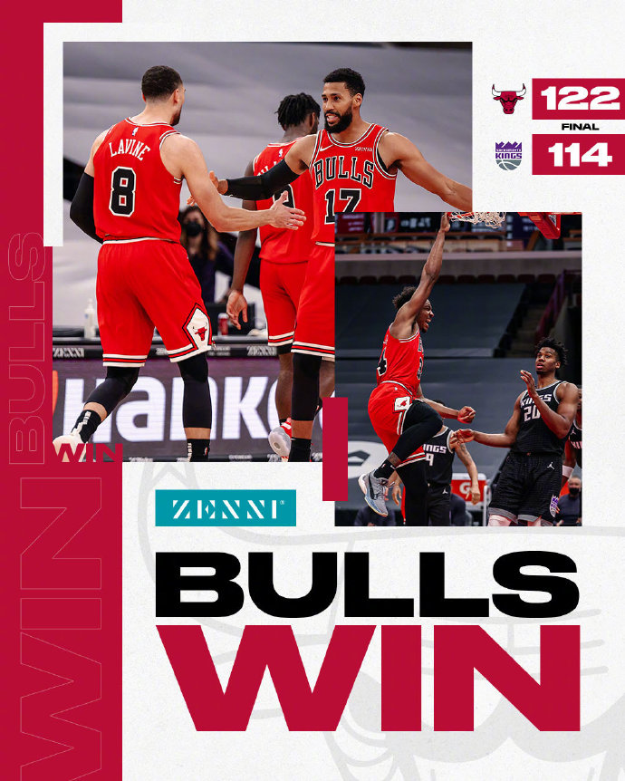 JRS直播网2月21日讯 NBA常规赛公牛主场迎战国王,此前国王已经遭遇五连败,本场巴恩斯和霍姆斯因伤缺席。国王将怀特塞德提上首发,和巴格利组成双塔,开场后两队交替得分,随后国王连续失误,公牛逐渐取得领先,次节两队进入对攻战,内线防守都被对方轻易打穿,拉文半场已经拿下20分,助公牛68-58维持领先优势。下半场易边再战,两队得分效率下滑,在拉锯战中,国王始终没能缩小分差,第三节最后0.7秒威廉姆斯还飙中超远三分。末节开局国王打出小高潮,终于将分差迫近到两分,但拉文连续突破,如入无人之境,分差很快重新拉大到十分,国王反超的希望破灭,114-122,遭遇六连败。