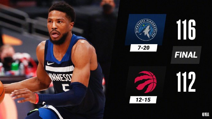 JRS直播网2月15日讯 四连败的森林狼客场挑战东部第八的猛龙,拉塞尔和卡尔弗的继续缺阵,让本就西部垫底的森林狼实力大打折扣,猛龙则是损失了两位锋线悍将阿努诺比和渡边雄太。不过球队战绩的巨大差距并没有让比赛从开始就陷入一边倒的局面,反倒是森林狼凭借一波三分雨一度占据场上主动,但随后猛龙凭借防守端联防加盯人的变化逼迫森林狼手感下降失误不断,而范弗里特半场不可阻挡轰下19分,猛龙也以58-54反超4分。易边再战风云突变,森林狼单节37-25的进攻高潮,再次将比分反超8分,末节决战森林狼突然断电失误不断,猛龙9-0的进攻高潮把比分追平,此后唐斯连得5分帮助森林狼重新把领先优势扩大到了6分,而西亚卡姆也在最后时刻错失空篮,最终,森林狼17年后再次在猛龙主场获得一胜,结束四连败的同时也送给对手两连败。
