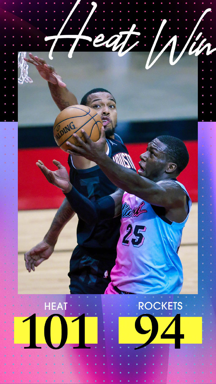JRS直播网2月12日讯 火箭坐镇主场迎战热火,希罗因健康与安全协议缺阵。上半场火箭率先找到手感,考辛斯、戈登和沃尔轮番得分,帮助火箭一路领先,以53-47结束半场。易边再战,火箭在第三节突然哑火,单节只得到10分,且奥拉迪波和塔克接连因伤离场。热火则找到外线手感,巴特勒、纳恩和邓肯-罗宾逊连中三分,热火凭借凶猛的外线火力完成比分反超并建立起两位数领先。末节火箭展开疯狂反扑,泰特和沃尔在比赛末连续得手,带领火箭在最后1分钟把分差缩小到3分。不过,伊格达拉在最后45秒连续抢下两个前场篮板,火箭在时间不够的情况下只能采用犯规战术,巴特勒稳稳命中罚球,热火就此锁定胜局。最终,热火在客场以101-94力克火箭,豪取4连胜,同时送给火箭4连败。