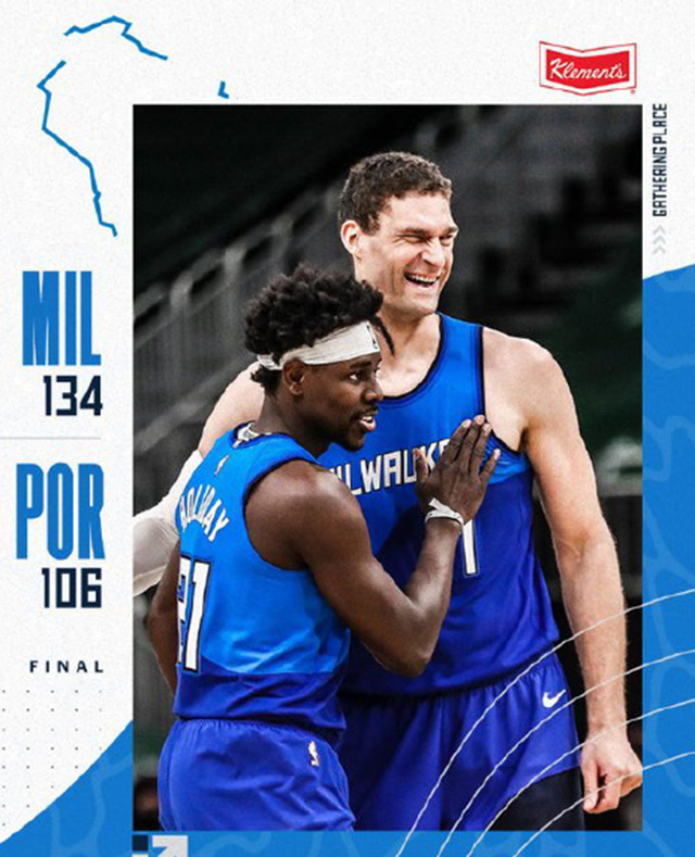 雄鹿(12-8):霍勒迪22分7篮板6助攻,阿德托昆博18分4篮板6助攻,米德尔顿17分5篮板9助攻,洛佩兹7分2篮板,波蒂斯21分8篮板2抢断,福布斯13分3助攻,奥古斯丁13分5篮板6助攻。