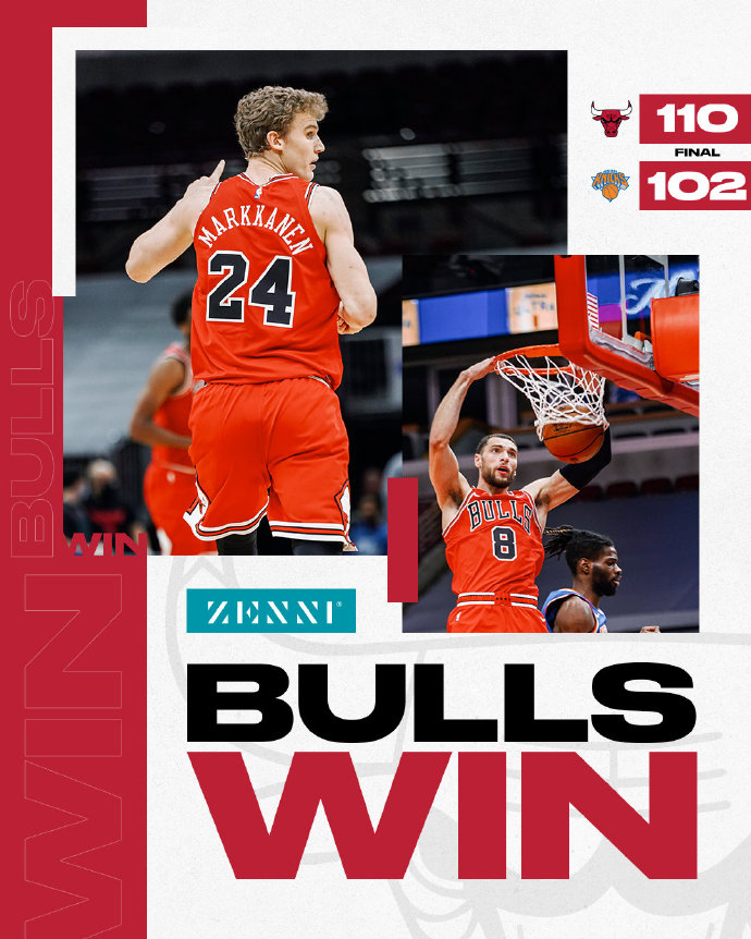 JRS直播网2月2日讯 公牛今日坐镇主场迎来尼克斯的挑战,两支球队近期状态都很糟糕,客队尼克斯最近5场输掉了4场,而主队公牛则遭遇3连败。首节比赛两队状态都很出色一路对攻,马尔卡宁成了搅局者,他在节中连拿12分带领公牛逐渐拉开比分,次节在尼克斯起势一度扭转比分之际,又是马尔卡宁站出来连续砍分止住颓势,他在上半场便攻下23分,而公牛也以59-55领先尼克斯结束上半场。下半场两队状态依旧僵持难以分出胜负,悬念一直保留到了最后一刻,整场发挥出色的兰德尔最后时刻出现致命失误,而公牛凭借着怀特和拉文的两记三分锁定胜局。最终,公牛主场险胜尼克斯结束3连败。