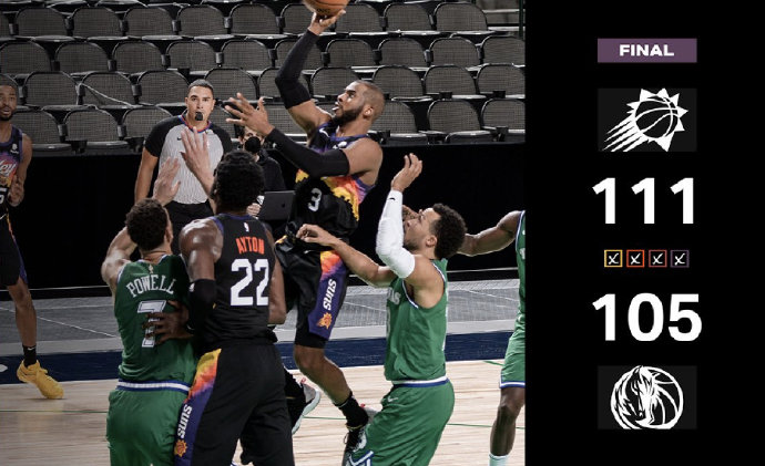 JRS直播网1月31日讯 独行侠今日坐镇主场迎来太阳的挑战,独行侠近期状态糟糕遭遇4连败,而太阳太阳则在上一场击败勇士结束3连败,不过球队核心布克因伤继续缺席。上半场的比赛双方激战难分高下,次节独行侠依靠着连续冲击篮下的进攻一度拉开比分,但最后时刻太阳迅速找到感觉并回敬11-3的攻势追平比分结束上半场。下半场之争东契奇开局突然爆发独砍11分,独行侠凭借一波15-2的最多取得15分的领先,但后半节局面急转直下突然哑火,这也给了太阳替补阵容追分的机会,末节初太阳再送8-0的攻势扭转局势,随后的拉锯战里保罗展现关键险胜的作用,他在最后时刻送出8分2次助攻,太阳最后时刻送出15-3的攻势奠定胜局。最终,太阳客场击败独行侠,并送独行侠5连败。