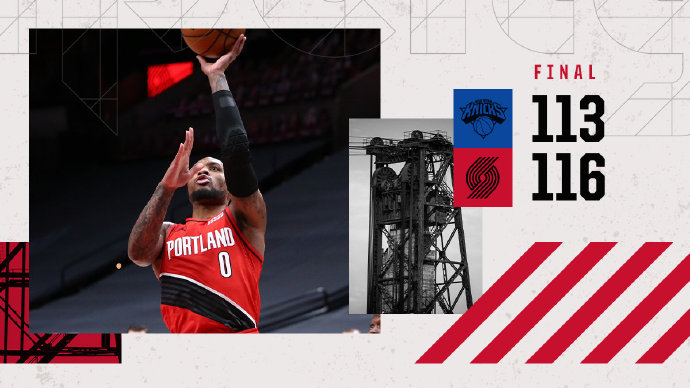 JRS直播网1月25日讯 NBA常规赛,开拓者今日迎战尼克斯,前者上场比赛输给马刺暂列西部第四位,后者同样是不敌国王,排名东部第八位,本场麦科勒姆和努尔基奇缺战。比赛一上来开拓者就迅速进入状态,连续的远投命中将分差拉大到两位数,次节尼克斯依旧没能阻止对手的攻势,半场结束时分差已经达到二十分。易边再战,开拓者的命中率终于开始下降,尼克斯抓住机会一度追上比分,但终究是没能实现反超,最终开拓者力克尼克斯,拒绝连败。