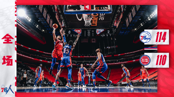 JRS直播网1月24日讯 活塞坐镇主场迎战76人,两队都是背靠背作战,此役格里芬和罗斯休战。上半场活塞外线手感火热,格兰特、艾灵顿和米哈伊柳克等连中三分,帮助活塞一度取得两位数领先。但是恩比德在次节后半段站出来连续砍分,率领76人打出高潮追上比分,在半场结束以61-63紧咬比分。易边再战,恩比德延续手感,率队在第三节再次打出高潮完成比分反超。末节活塞反扑失败,最终76人以114-110力克活塞,取得3连胜,同时送给活塞4连败。