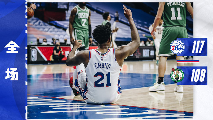 76人(10-5):恩比德42分9篮板,西蒙斯11分8篮板8助攻,哈里斯22分3篮板5助攻,格林12分6篮板,米尔顿16分,霍华德7分10篮板,科克马兹7分。