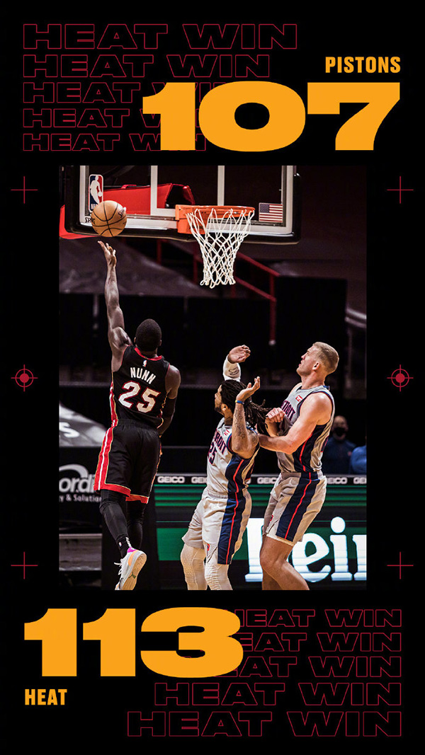 JRS直播网1月19日讯 热火主场迎战活塞的比赛推迟至9:00进行,首节活塞一波流一举将比分拉开到20分,第二节热火稍稍将追回比分以落后6分进入下半场,第三节热火打出一波流将比分反超,末节两队进入拉锯状态,但热火笑到最后力克对手,自己也制住了 三连败。