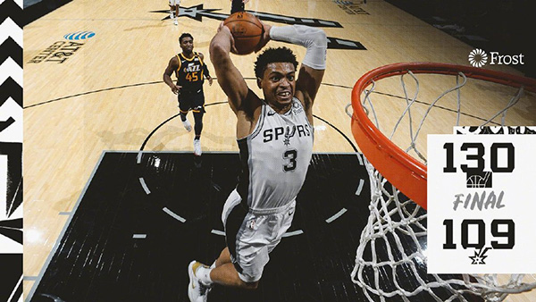 JRS直播网1月4日讯 NBA常规赛爵士客场对阵马刺,马刺近来状态不佳遭遇3连败。开场后爵士就早早进入状态,他们在三分线外多次命中三分取得领先,第二节克拉克森和博格达诺维奇继续带领爵士打出攻势一举将分差拉大到21分,虽然沃克和约翰逊为马刺一度缩小分差,但米切尔等人手感火热,上半场结束时爵士65-51领先马刺。下半场回来虽然马刺多次杀入内线得手,但戈贝尔也多次送出大帽,爵士外线又是多次三分雨下,第四节爵士依旧保持火热手感,马刺追分无望,最终爵士130-109送给马刺4连败。