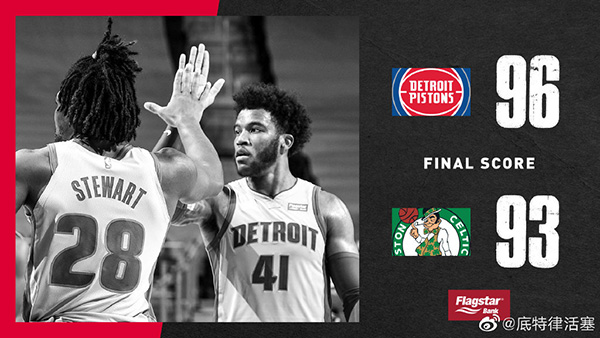 JRS直播网1月2日讯 NBA常规赛,活塞今日迎战凯尔特人,前者开季遭遇四连败未尝胜绩,在东部排名倒数第二,而后者则是取得了两连胜,升至东部第七位,本场格里芬因脑震荡缺战。比赛上来凯尔特人进入状态较慢,单节仅拿到12分,活塞把握住机会取得两位数的领先优势,进入次节场上分差一度超过二十分,但此后凯尔特人状态回暖半场将分差缩小到15分。易边再战,凯尔特人还是在双星的带领下追上比分,比赛悬念保持到最后,关键时刻凯尔特人陷入得分荒,罗斯突破打进反超上篮,布朗绝平三分不中。最终活塞力克凯尔特人,终于迎来赛季首胜。