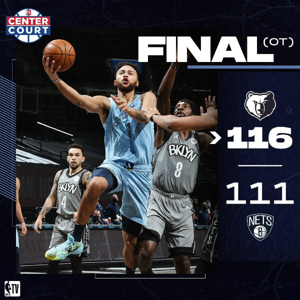 JRS直播网12月29日讯 灰熊今日迎战篮网,此役杜兰特和欧文双双轮休,丁威迪也因伤报销,比赛上来灰熊率先拿到球权,狄龙跳投为灰熊率先取得两分,随后灰熊外线接连命中打出一波7比0的小高潮,随后安德森又接连命中两记三分,双方分差来到两位数。次节开场双方展开对攻大战,篮网进攻有所好转,凭借勒韦尔的压哨投篮命中篮网反超1分。易边再战,易边再战,灰熊进攻有所调整,在瓦兰的带领下灰熊发起反击,三节结束时灰熊领先2分,第四节双方比分交替领先,勒韦尔绝杀三分不进,双方进入加时。加时赛灰熊把握住机会取得领先,最终灰熊战胜篮网。