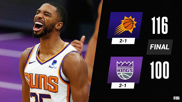JRS直播网12月28日讯 NBA国王主场背靠背再战太阳,在昨天的比赛中国王3分险胜。开场后布里奇斯和艾顿发挥不错帮助太阳取得领先,但是国王通过外线打出高潮将比分反超,此后两队多次在外线命中三分,第二节两队多次打成平手,依靠布克的得分太阳在上半场以56-53领先3分。下半场回来国王率先打出攻势,布克则接连为太阳拿分,在三节结束前国王进攻断电被太阳将分差拉大到两位数,第四节国王也未能追上比分,最终太阳116-100击败国王成功复仇。