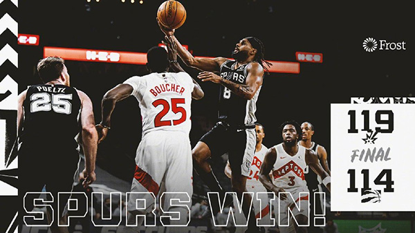 JRS直播网12月27日讯 NBA常规赛,猛龙今日挑战马刺,前者在首场比赛中不敌青年军鹈鹕,而后者则是利用经验战胜了年轻灰熊。比赛上来猛龙率先进入状态取得领先,此后又是打出一波8-0的小高潮将分差拉大到两位数,但进入次节猛龙在进攻端突然低迷,马刺则是成功抓住机会直接实现反超,半场结束时马刺领先3分。易边再战,两队依旧是保持拉锯,场上比分交替领先,比赛悬念保持到最后,关键时刻阿尔德里奇篮下二次进攻帮助马刺取得领先,范弗里特错失绝平三分,最终马刺险胜猛龙,迎来开季两连胜。