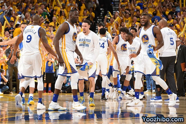 勇士首发阵容:哈里森-巴恩斯、德拉蒙德-格林、博格特、克莱-汤普森、斯蒂芬-库里