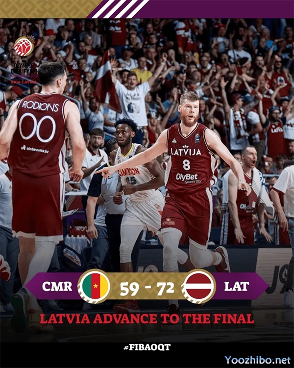 JRS直播网讯 07月07日讯 巴黎奥运会男篮落选赛拉脱维亚赛区半决赛,拉脱维亚72-59战胜喀麦隆。