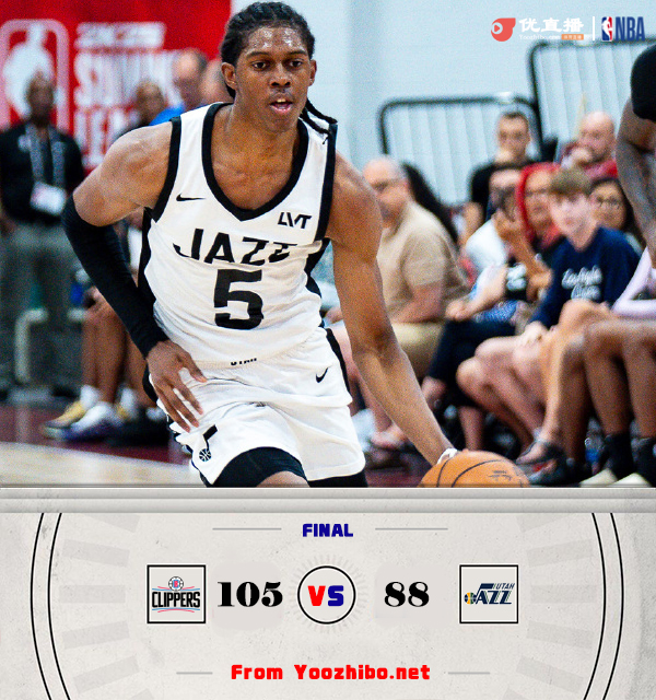 JRS直播网7月19日讯 NBA夏季联赛今日继续开打,快船和爵士迎来一场交手。夏联状态火热的快船二年级新秀乔丹-米勒继续首发出战,爵士方面乔治已经确定不再出战夏联,球队有亨德里克斯和科迪-威廉姆斯领衔。比赛开局双方状态都不是很好,夏联三场场均26.7分的米勒也迷失自我进攻端没有太大贡献,快船单节仅得13分导致场面稍显被动;爵士方面表现同样不是很好,双方出奇的一致前27次出手都只命中10球,命中率不足4成;不过这之后双方节奏明显起来,米勒也逐渐找到状态连续拿分并为快船取得3分优势进入下半场。次节归来快船抢开局送出14-4的攻势迅速扭转局势;末节快船再送10-2的攻势将分差拉大至15分奠定胜局。最终,快船轻取爵士豪取夏联4连胜。