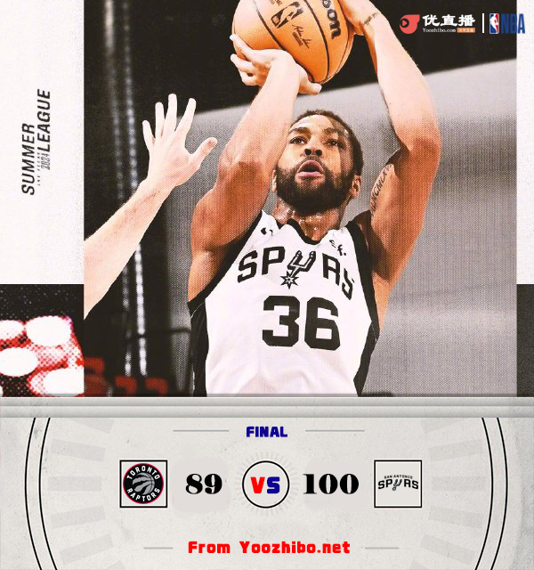 JRS直播网7月22日讯 NBA夏季联赛排位赛,猛龙对阵马刺。猛龙上半场依旧表现慢热,马刺以10-0开局,猛龙首节只得到14分,马刺早早建立起10分优势,第二节马刺在进攻端依旧稳定,他们继续将分差拉大。下半场回来猛龙表现有所好转,第三局两队打成平手,最后一节猛龙略微缩小分差但也难挽败局,最终马刺100-89轻松击败猛龙。