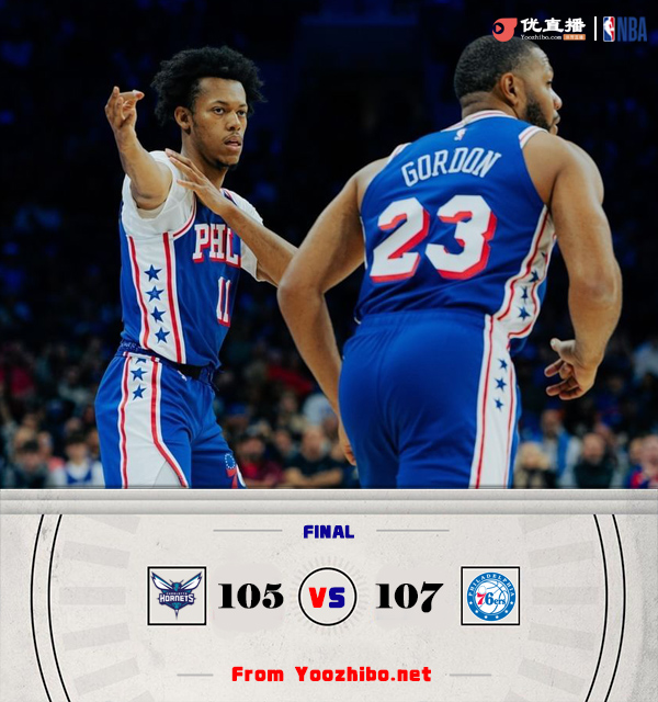 JRS直播网11月11日讯 NBA常规赛今日继续开打,76人坐镇主场迎战黄蜂。76人方面乔治出战,马克西和恩比德继续缺阵。首节之争双方状态都很糟糕,76人首节仅得16分但还能领先黄蜂1分;次节双方迅速回暖均砍下高分,但场面仍然僵持最大分差不过6分,76人依靠乌布雷最后的进球守住1分优势进入下半场。休息归来76人局面稍占上风,节中连续三分帮助他们拉开分差,末节又一6-0开局一度取得16分的领先;但大好局面之下他们没能控制住局面,黄蜂在鲍尔连续拿分中回敬21-4的攻势上演大逆转最后时刻76人两记关键三分重夺领先,但鲍尔最后回敬三分拖入加时。驾驶室双方持续拉锯悬念留到最后,鲍尔读秒阶段出现致命的24秒违例失误葬送好局,随后米勒空位三分不中错失绝杀。最终,76人力克黄蜂拿下比赛。