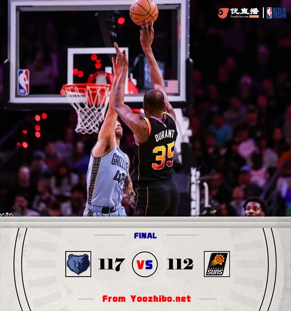 JRS直播网1月1日讯 NBA常规赛,灰熊对阵太阳。灰熊上场比赛大败给雷霆,本场比赛莫兰特继续缺阵,太阳最近遭遇2连败,本场比赛布克复出。开场后贾伦-杰克逊连续强攻得手帮助灰熊以11-2开局,虽然太阳进攻逐渐找到感觉,但贾伦-杰克逊完全打爆太阳内线,他首节独得19分带领灰熊建立起10分优势。第二节上来太阳一波7-0的反扑迫近比分,这次换到贝恩站出来,他外线连中三分独得10分帮助灰熊稳住阵脚,两队陷入拉锯战,比尔受伤离场。易边再战,太阳多点开花一路追到只差2分,但随后他们自己连续出现失误又被灰熊将比分拉开,太阳多次努力追分,但始终差一口气未能将比分追上,康查尔跑篮下空位打成2+1,杜兰特强攻不中,最终灰熊117-112送太阳3连败。