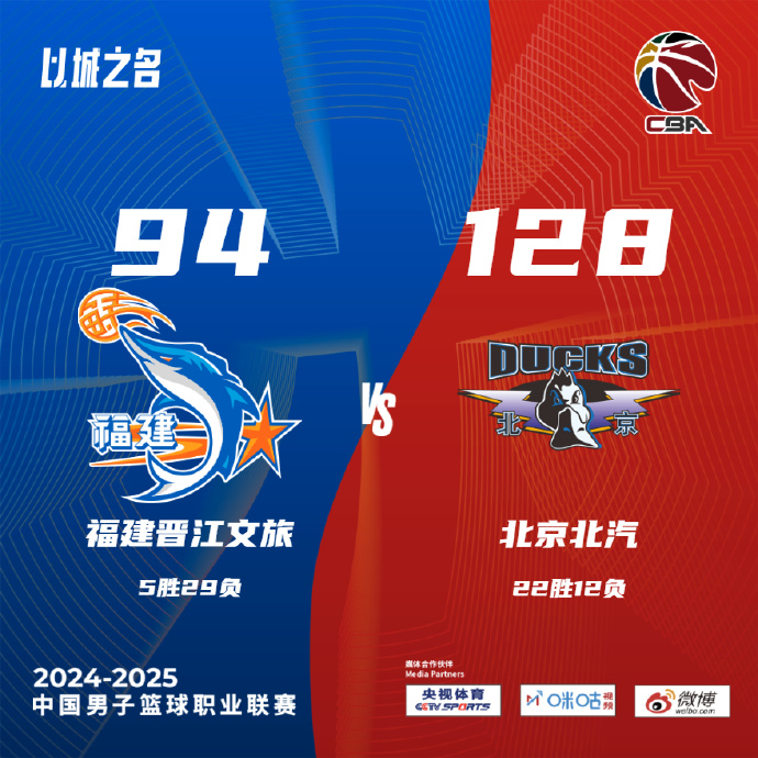 JRS直播网1月24日讯 CBA常规赛,福建今日迎战北京,前者近来遭遇三连败,后者上场比赛则是战胜深圳,比赛上来,曾凡博就展示出了火热的状态连拿六分,还有一记精彩隔人劈扣,但其他球员的表现并不算好,被福建利用一波11-0的小高潮完成反超,之后两队陷入到长时间的拉锯战,分差始终无法拉开,凭借着邹阳的压哨三分,福建领先结束半场;下半场回来,场上完全出现一边倒的局面,周琦先是连续得分,随后曾凡博连中三记三分球还有两个五佳球级别的暴扣,两人单节合砍21分,北京不但实现反超还取得了20+的领先优势,比赛在末节已经失去悬念,最终北京大胜福建,送给后者四连败。